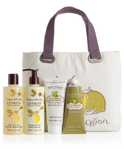 Features of this Crabtree & Evelyn - CITRON, HONEY & CORIANDER - Lux Tote 5 Piece Gift Set