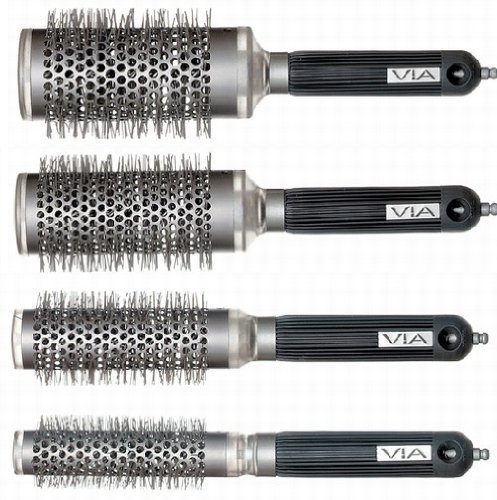 Via Tourmaline Ceramic Ion X-large Thermal Round Hair Brush contains a ceramic coated aluminum barrel of VIA Ion + Ceramic to diffuse heat quickly and evenly. This accelerates the drying time as well as eliminates damaging hot spots on the barrel surface. The superior performance of the VIA Ion + Ceramic brush is maximized when used with heat. Hair is left shinier, smoother and healthier. Ceramic is a chemically crystallized, inorganic, non-metallic substance that has been baked in high heat and pressure to create a bio-ceramic substance. Initially developed to withstand the extreme temperatures experienced during space travel, the remarkable thermal distribution qualities of ceramic materials have been researched and utilized for years. th...